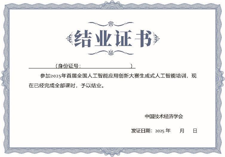 所有报名参赛的员工,学习完了有关免费课程后,中国技术经济学会统一颁发生成式人工智能结业证书。