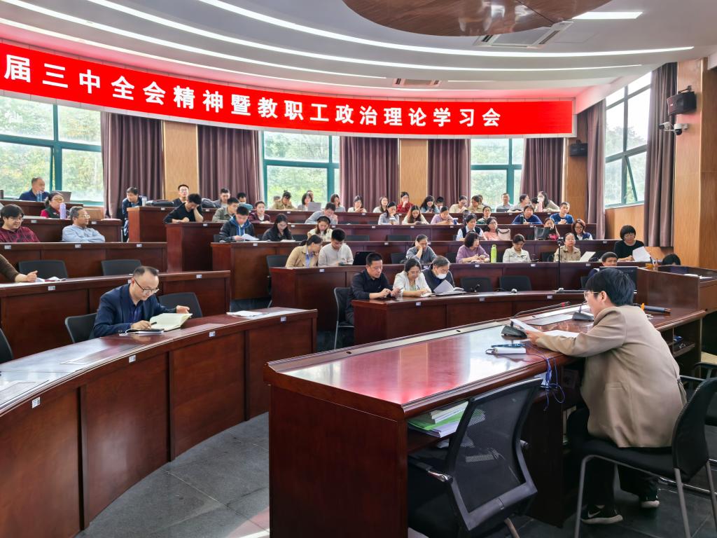 党委书记刘发明作学习动员讲话。他指出学习贯彻党的二十届三中全会精神是当前和今后一个时期的一项重要政治任务,希望全院师生要以党的二十届三中全会精神为指引,深入学习精神实质,并与当前的团队建设、巡察整改、深化改革、年末的大事要事等任务结合起来,将学习收获转化为工作改革的动力,助推学院高质量发展。