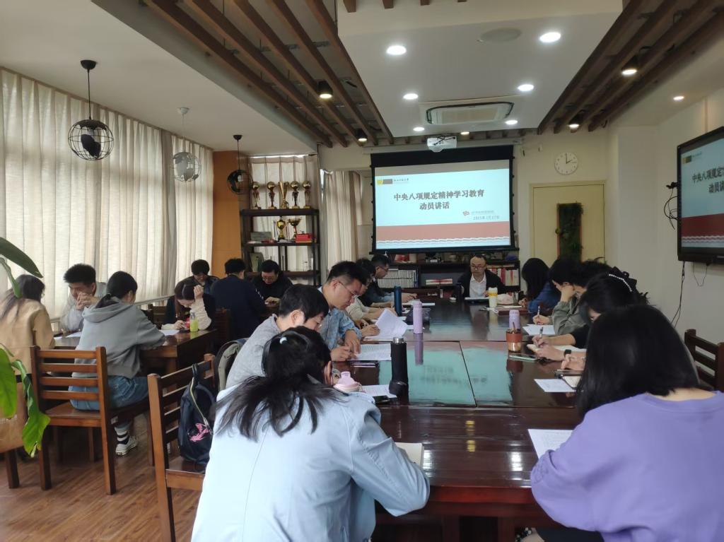 刘发明指出今年党建工作的重点任务也是重要政治任务就是开展深入贯彻中央八项规定精神学习教育。他强调,高校作为“为党育人、为国育才”的前沿阵地,肩负着培养社会主义建设者和接班人的重大政治责任。中央八项规定精神所彰显的刀刃向内的政治勇气,为深化高校作风建设提供了根本遵循,是确保党对教育事业全面领导的重要保障,是落实立德树人根本任务的制度利器。为了全面推进开展深入贯彻学习教育落地见效,他提出六点要求:一是要深入学习习近平总书记关于加强党的作风建设的重要论述和中央八项规定及其实施细则精神,充分认识开展这次学习教育的重要意义;二是要聚焦主题、注重实效,一体推进学查改促,力戒形式主义,真正以小切口撬动大变化;三是要深化学习、增强自觉,深刻认识八项规定以及实施细则等是管长远的铁规矩、硬杠杠,筑牢加强作风建设的思想根基;四是要真查实改、标本兼治,全面深入查找存在问题,与学院巡察整改一起,做到立查立改、即知即改、一体整改;五是要依靠群众、开门教育,走好新时代党的群众路线,着力解决师生急难愁盼问题,尤其是春季的员工工作,走入员工群体,强化关心关爱,体现“导”中有“温”;六是要切实扛起二级公司党委主体责任,充分发挥党员领导干部示范带头作用,坚持“两手抓、两促进”,以高质量发展和中层干部集中调整期间的各项工作的平稳有序检验学习教育成效。