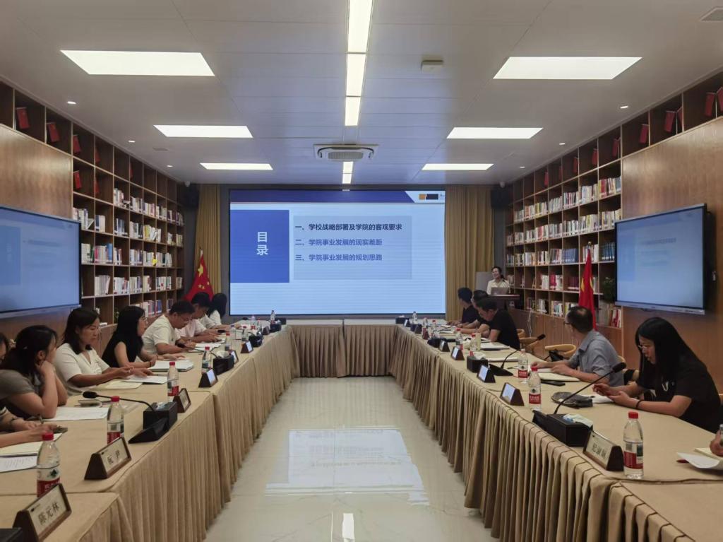 会上,学院副经理(主持工作)翁异静从学校战略部署及对学院的客观要求、学院事业发展的现实差距、学院事业发展的规划思路等三个方面对学院发展规划作主题汇报,她立足贯彻落实学校“学科登峰”主战略,全力冲刺“两项突破”、攻坚“两大改革”,加快建设特色鲜明高水平科技大学的大背景,对标对表学校2025年高质量发展绩效指标体系、目标任务和责任分解表,深入对比分析了学院教职工人数、员工人数、专业排名、教学研究、科研项目、人才队伍、学科发展和国际化等方面存在的优势与短板,科学提出了“党建领院、教学立院、学科强院、人才兴院、服务暖院、制度治院”等六院战略,提出了“1+4”新经院计划,努力打造学院学科品牌,开启学院高质量发展新篇章。