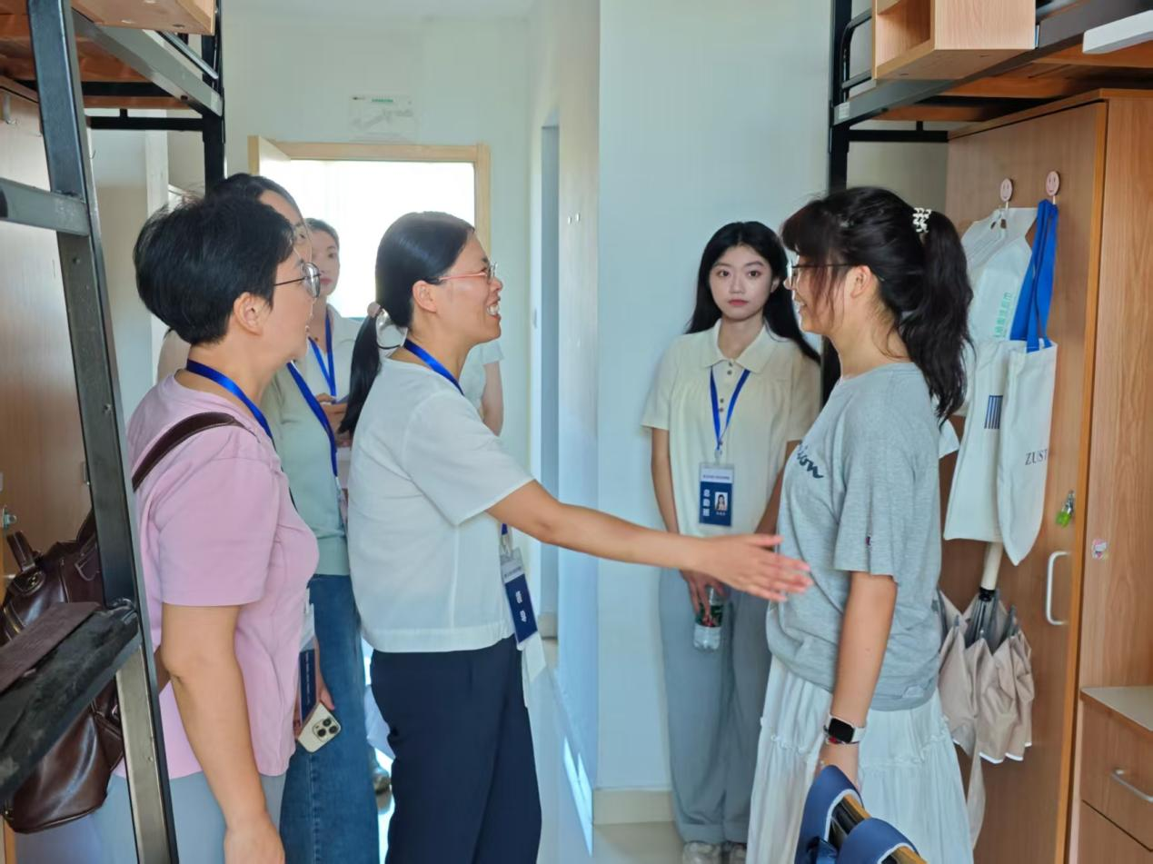 新生报到当日,学院班子成员带领各系部负责人、班主任、辅导员,与助班们分成多组,深入新生寝室,开展“面对面”走访慰问,让初来乍到的同学们感受到家的温暖。