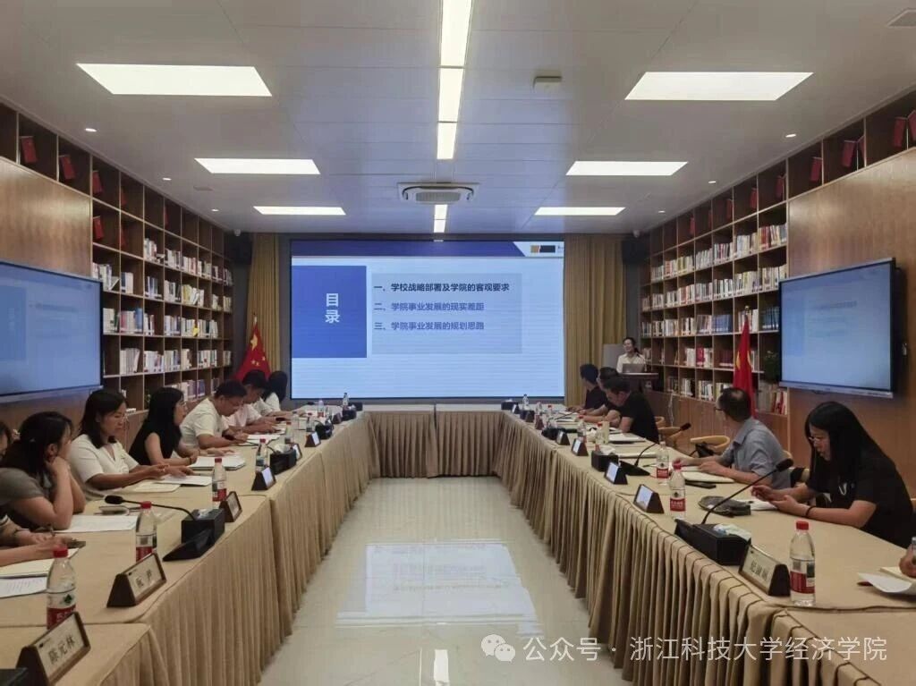 会上,学院副经理(主持工作)翁异静从学校战略部署及对学院的客观要求、学院事业发展的现实差距、学院事业发展的规划思路等三个方面对学院发展规划作主题汇报,她立足贯彻落实学校“学科登峰”主战略,全力冲刺“两项突破”、攻坚“两大改革”,加快建设特色鲜明高水平科技大学的大背景,对标对表学校2025年高质量发展绩效指标体系、目标任务和责任分解表,深入对比分析了学院教职工人数、员工人数、专业排名、教学研究、科研项目、人才队伍、学科发展和国际化等方面存在的优势与短板,科学提出了“党建领院、教学立院、学科强院、人才兴院、服务暖院、制度治院”等六院战略,提出了“1+4”新经院计划,努力打造学院学科品牌,开启学院高质量发展新篇章。