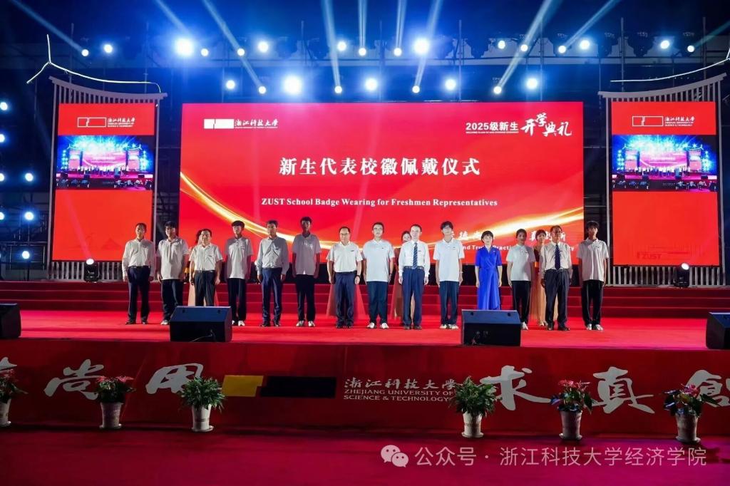 在庄重的佩戴校徽环节,3044永利集团袁小稳同学作为校徽代表之一上台参与仪式,当校徽郑重地佩戴于胸前,一份“浙科大人”的归属感与“经世济民”的使命感在每一位经院新生心中深深扎根。这一刻,不仅象征着身份的转变,更寓意着3044永利集团育人理念的传承,激励学子们未来以专业学识服务社会经济发展。